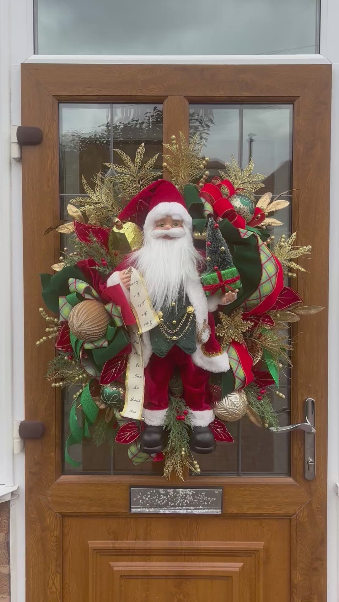 Bring home the Father Christmas Wreath — a grand, joyful centrepiece that captures the wonder and warmth of Christmas