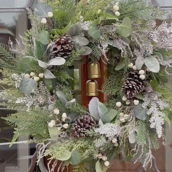 Handcrafted with green foliage, clusters of white berries, and natural pinecones, this 40cm wreath captures the essence of a calm winter woodland. Its understated design and organic textures make it perfect for those who love natural décor and Scandi-inspired simplicity.
